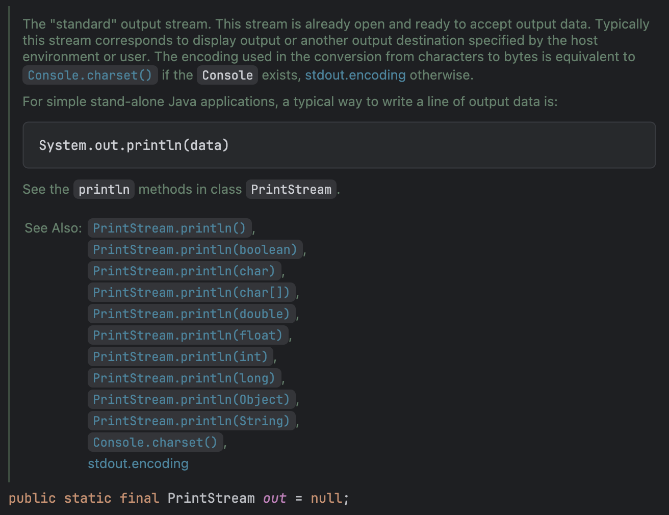 이를 제대로 이해하기 위해서 JDK의 일부 코드이며 java.lang 패키지 내에 있는 System 클래스의 내용부터 보았습니다.